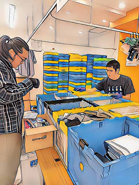 スタッフが回収したもの洗濯・乾燥後に納品します。